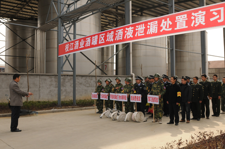 3月17日下午3時(shí),在枝江酒業(yè)新竣工投產(chǎn)的2萬(wàn)噸基酒車(chē)間儲酒庫,枝江酒業(yè)2011年度首次消防演習如期舉行,此次演習圍繞“酒罐區域酒液泄露處置…